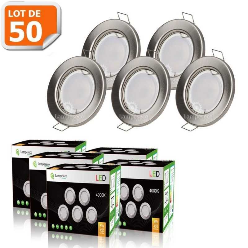 Spot led encastrable en kit se compose d'un spot encastrable fixe + une ampoule à led GU10 + une douille automatique (sans vis) GU10 avec avec connecteur d'alimentation. Connectez ce spot directement sur le secteur 230V sans transformateur et remplacez vos spots halogènes équivalent environ 50W.