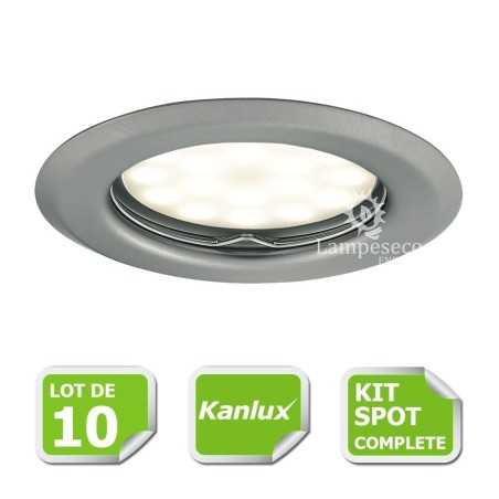 LOT DE 10 SPOT ENCASTRABLE CHROME MAT LED MARQUE KANLUX GU10 230V 5W BLANC CHAUD